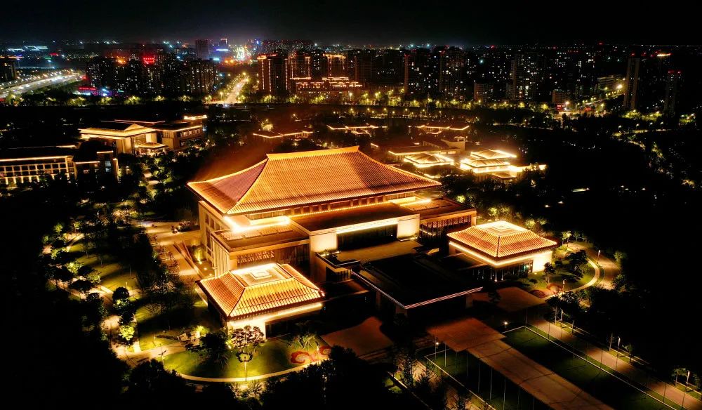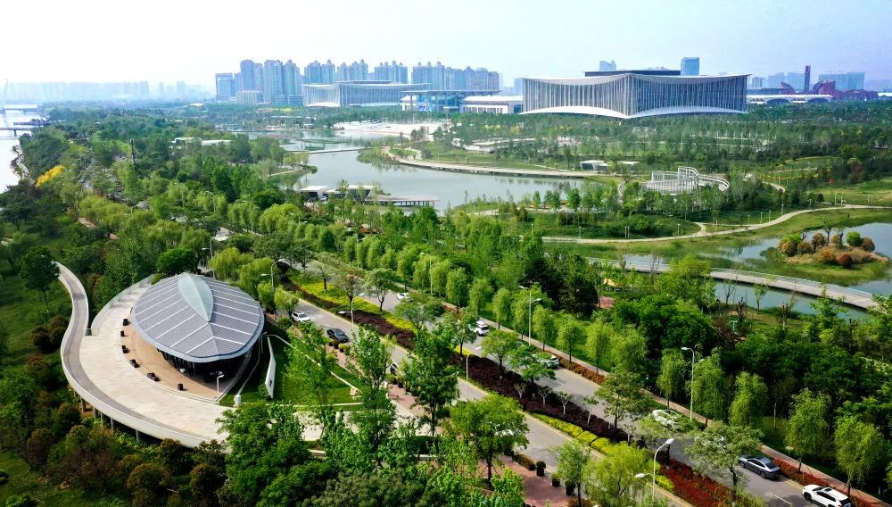 ↑位于西安浐灞生態(tài)區(qū)的西安國際會議中心(5月1日攝,無人機(jī)照片)。新華社記者 劉瀟 攝