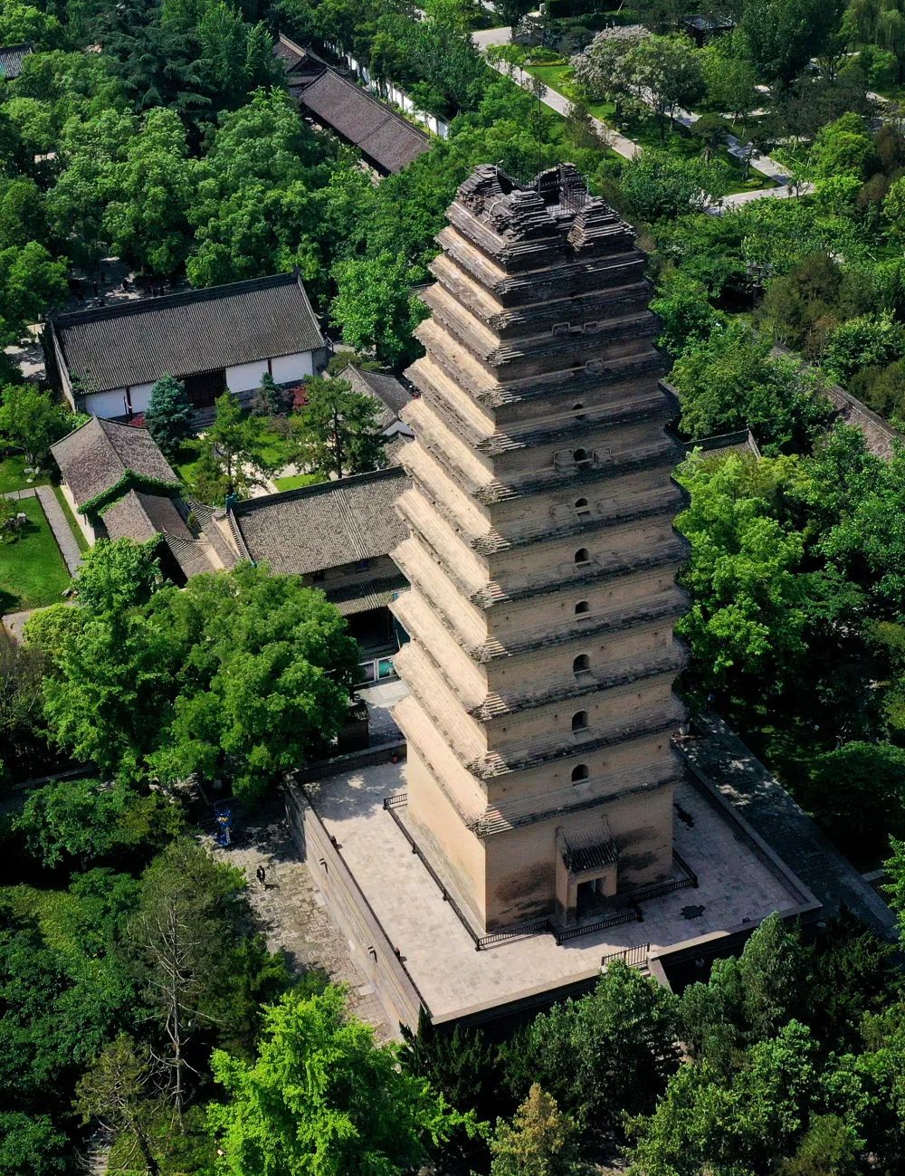 ↑西安小雁塔(5月8日攝,無人機(jī)照片)。新華社記者 劉瀟 攝