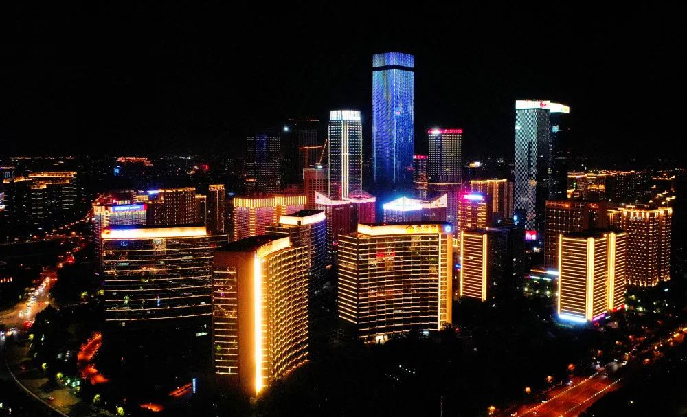 ↑西安高新區(qū)都市之門區(qū)域夜景(4月30日攝,無人機(jī)照片)。新華社記者 劉瀟 攝