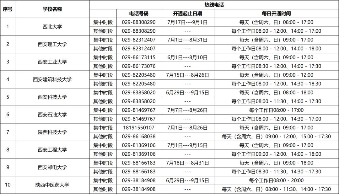 為幫助廣大學(xué)生和家長(zhǎng)及時(shí)準(zhǔn)確了解國(guó)家資助政策,申請(qǐng)獲得相應(yīng)資助,陜西省地方高校本專(zhuān)科學(xué)段每年暑期均開(kāi)通熱線電話。