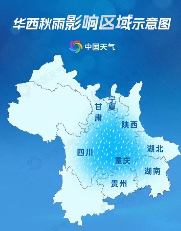 華西秋雨是我國(guó)華西地區(qū)秋季(9-11月)特有的天氣現(xiàn)象。秋季,頻繁南下的冷空氣與暖濕空氣在該地區(qū)相遇,使鋒面活動(dòng)加劇而產(chǎn)生較長(zhǎng)時(shí)間的陰雨天氣。主要影響區(qū)域?yàn)樗拇、重慶、貴州、寧夏南部、甘肅東部和南部、陜西南部及湖南西部、湖北西部等地。