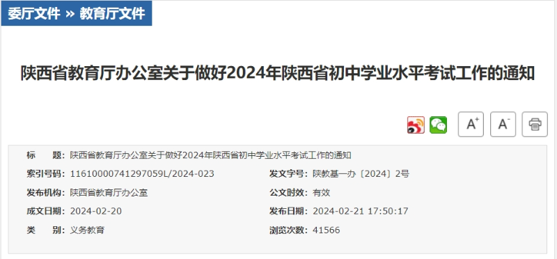2月21日記者從陜西省教育廳獲悉,2024年陜西省初中學(xué)業(yè)水平考試工作相關(guān)安排出爐,對(duì)考試對(duì)象、考試科目、各科目試卷滿分值及考試時(shí)長等做了明確。突出學(xué)生綜合素質(zhì)的考查,并通過優(yōu)化命題形式,引導(dǎo)減少死記硬背和“機(jī)械刷題”。任何單位與個(gè)人不得根據(jù)初中學(xué)業(yè)水平考試成績給學(xué)校和學(xué)生排隊(duì)或以任何形式公布名次。