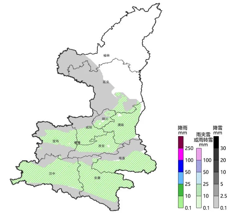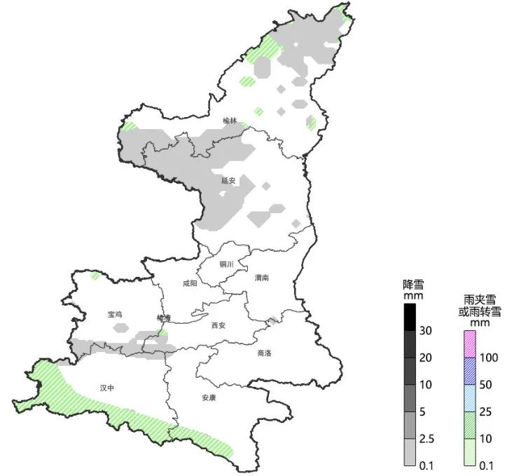 今天晚上:全省多云間陰天,陜北部分地方、秦巴山區(qū)有零星小雪(0.1-1mm)。
