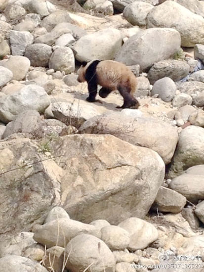 大熊貓受到驚嚇徘徊在河邊。(圖片來源于網(wǎng)絡(luò))