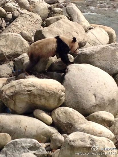 大熊貓受到驚嚇徘徊在河邊。(圖片來(lái)源于網(wǎng)絡(luò))