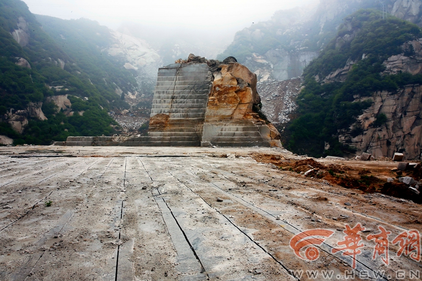 在華陰市大敷峪內一個山頭已經(jīng)被削平。留下光禿禿的平面。 記者 鄧小衛(wèi) 文/圖