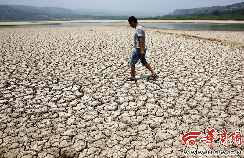 昨日,三原縣飲用水源馮村水庫(kù)水量嚴(yán)重不足,庫(kù)底泥土已經(jīng)干裂,目前縣城全部采用地下深井供水 記者鄧小衛(wèi)攝今年進(jìn)入主汛期以來(lái),陜西省遭受嚴(yán)重的伏旱。7月下旬……