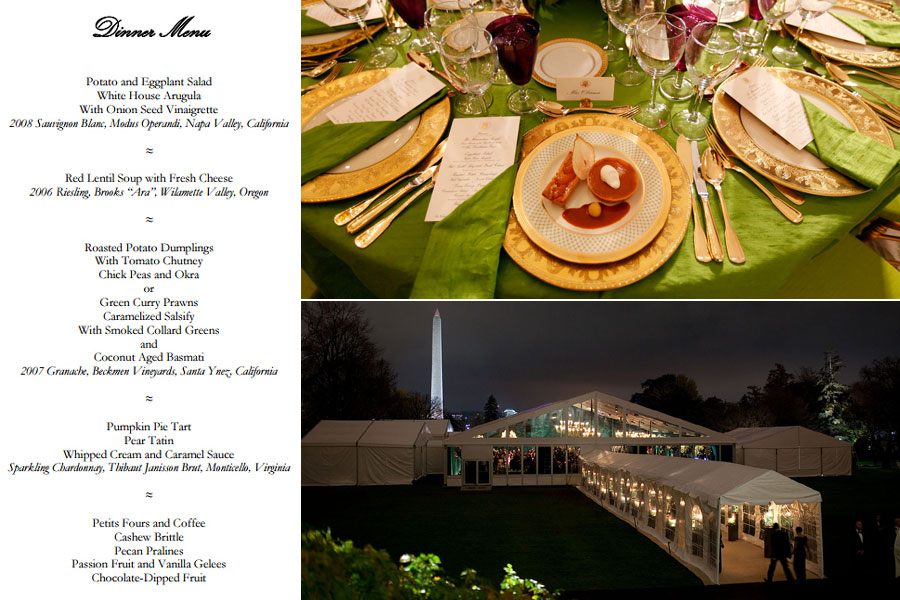 國宴的菜單是精心選定的,其中專門為素食主義者辛格準(zhǔn)備了鮮美素食。宴會菜譜主打印度和美國時令菜肴,頭道菜是土豆和茄子沙拉。甜點(diǎn)有南瓜餡餅、涂有生奶油和焦糖淋醬的梨撻,每道甜點(diǎn)都會配有不同口味的紅酒。