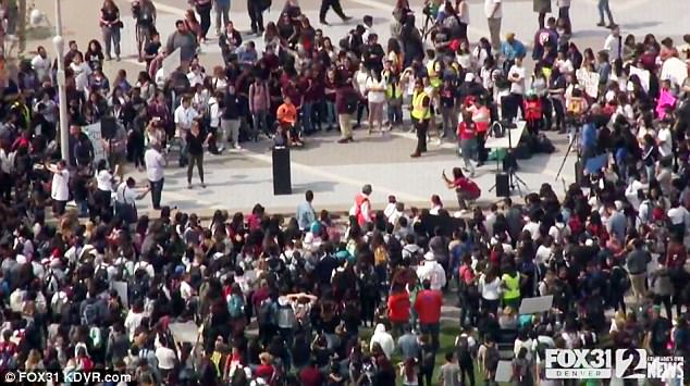 周二,來自丹佛地區(qū)數(shù)百名高中生走出校門,抗議美國廢除移民特別保護項目“童年抵美者暫緩遣返”(DACA)計劃。當(dāng)天是美國學(xué)生返校第一天。(圖片來源:每日郵報)VqW安康新聞網(wǎng)