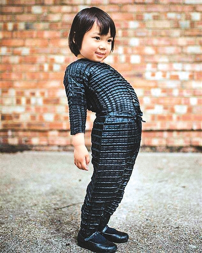 | 圖為英國設(shè)計師瑞安·亞辛發(fā)明的可與孩子一起“長大”的智能童裝。 |
