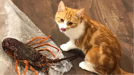 派德斯(Paddles)在大龍蝦面前展示一副饞嘴臉孔。阿德恩總理從收養(yǎng)派德斯不久,這只小貓就爆紅網(wǎng)絡。 Bnv安康新聞網(wǎng)