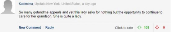 美國紐約的網(wǎng)友Kabimima:“眾籌平臺GoFundMe上有各種訴求,而這位女士卻沒有要求任何東西,只是想要能夠繼續(xù)送她的孫子上學(xué)。她真是了不起。”
