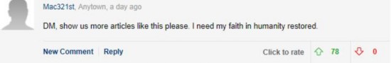 網(wǎng)友Mac321st:“請多寫些這樣的報道。他們的故事讓我重拾對人性的信心!