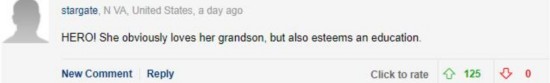 美國弗吉尼亞州的stargate說:“她真是個英雄。她關(guān)愛自己的孫子,而且了解教育的重要性!保ㄌ祗P)