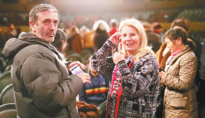 羅馬僑胞蔣鴻建夫婦是和外孫女一同來的。到意大利30多年,蔣鴻建笑妻子錢曉楓,“只要有中國藝術(shù)團的演出,每場必看,而且都早早到場”。錢曉楓則“揭發(fā)”蔣鴻建:“這次他就是為了帶外孫女才來!北M管外孫女才2歲,蔣鴻建一本正經(jīng)地告訴記者:“要讓孩子從小了解中國文化。別看才2歲,她看得懂,還會說上海話呢!