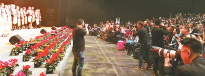 | “親情中華”藝術(shù)團向觀眾隨機贈送小禮物,葡萄牙觀眾開心地展示自己獲得的中國結(jié)。本報記者 孫立極攝 |