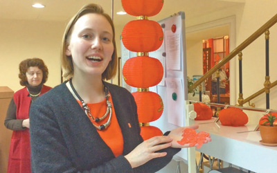 為了更好地傳遞這種信息,文化中心精心策劃了具有本地特色的春節(jié)特別活動(dòng)。位于莫斯科紅場(chǎng)旁的大型百貨商場(chǎng)“古姆”,是俄羅斯最負(fù)盛名的高檔商場(chǎng),從2月8日起,商場(chǎng)進(jìn)入了“春節(jié)月”,邀請(qǐng)著名室內(nèi)裝飾大師,巧妙地將中國福娃與俄羅斯套娃、中國喜蛋與俄羅斯彩蛋等中俄節(jié)日文化元素結(jié)合在一起。長廊上,極具中國特色的“紅包”樹掛,讓人流連忘返的精品刺繡展品,充滿中國年味兒的民間藝術(shù)糖畫、剪紙,色香味俱全的中國美食,以及商場(chǎng)里循環(huán)播放的“恭喜發(fā)財(cái)”中國新年歌,讓中國春節(jié)走進(jìn)了當(dāng)?shù)匕傩盏纳钊ΑF穱L中華美食是春節(jié)期間最受外國人歡迎的一個(gè)文化活動(dòng),但這次玩出了“新花樣”——與俄羅斯總廚協(xié)會(huì)合作,舉辦中俄美食之夜,由中俄兩方的廚師團(tuán)隊(duì)采用相同食材做出不同菜品,由媒體記者、美食家和用餐客人共同品鑒。