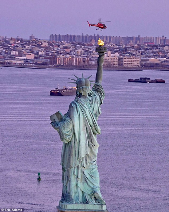 攝影師埃里克·亞當(dāng)斯(Eric Adams)碰巧拍到了直升機(jī)墜毀幾分鐘前飛過自由女神的照片。