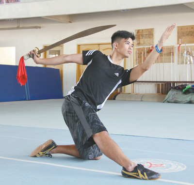 | 準備參加?xùn)|南亞運動會的菲律賓國家武術(shù)隊隊員在進行訓(xùn)練。本報記者 孫廣勇攝 |