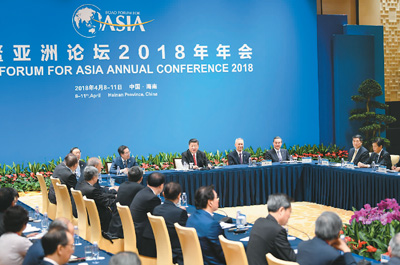 | 四月十一日,國家主席習(xí)近平在海南省博鰲同出席博鰲亞洲論壇二○一八年年會的中外企業(yè)家代表座談。 |
