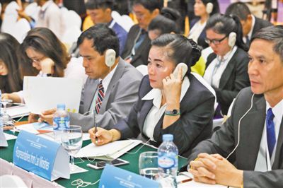 | 7月2日至3日,2018瀾滄江—湄公河合作媒體峰會在老撾首都萬象舉行,與會代表正在傾聽大會發(fā)言。本報記者 王斯雨攝 |