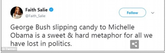“小布什偷偷把糖給米歇爾,是對我們在政治中失去一切的甜蜜和生硬的隱喻!
