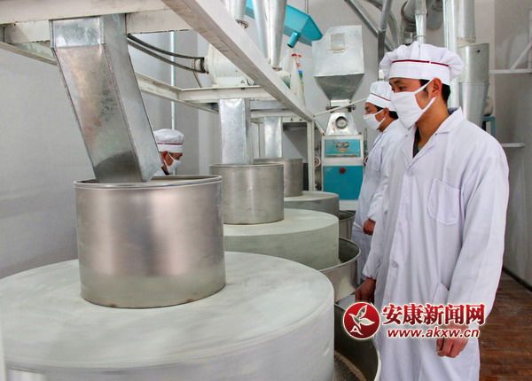 此后,劉繼祥先后到河南、山東等地實地考察,并進(jìn)行了深入細(xì)致的市場調(diào)研,最終下定決心,在家鄉(xiāng)白河開建一家石磨面粉加工廠。租賃場地、設(shè)備購置、安裝調(diào)試、人員招聘培訓(xùn)……辦廠前期工作緊鑼密鼓地有序進(jìn)行。按照扶持小微企業(yè)創(chuàng)業(yè)的相關(guān)政策,縣人社局為其提供了為期兩年的場地租賃補貼。
