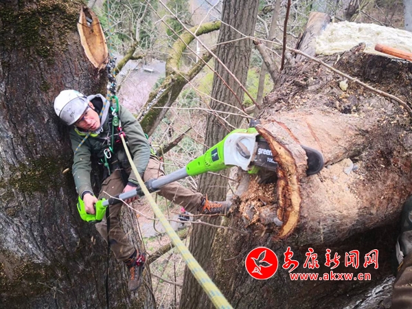 “在修復期間,我們聘請了國內(nèi)最頂尖的攀樹師、修剪師,攀登到樹頂,對樹體的枯枝、病腐枝進行了清理,然后對所有樹洞存在腐爛的地方,使用消毒滅菌的藥物進行處理,對影響樹體生長,可能造成二次傷害位置的漏洞、樹洞進行了封堵。我們使用的攀樹、修剪技術(shù)目前在我們陜西省內(nèi)屬于首次的應用,通過這次修剪之后讓陽光照進傷口,使古樹再次萌發(fā)了蓬勃生長的動力”,白河縣林業(yè)局自然保護地管理辦公室主任肖培軍介紹說。