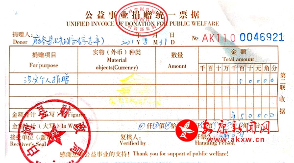 據悉,這筆特殊捐款來自2020年時任陜西省府谷縣財政局副局長高志平。在當年全省脫貧攻堅交叉檢查時,白河縣脫貧攻堅資金績效檢查組被抽調檢查府谷縣,在近一個月的時間里,高志平與檢查組成員們同吃同住、相互配合,高質量完成了檢查任務,也結下了深厚的兄弟情義。在得知白河縣受到暴雨天氣影響,多地發(fā)生災情時,他心急如焚,一直用微信與白河縣的同志們交流了解情況。當?shù)弥敬伟缀邮転膰乐貢r,他第一時間表示要求捐款,委托白河的同志幫忙通過微信轉賬進行捐款,知道捐贈成功后,高志平心里的一塊大石頭終于落地,他高興地說:“只是做了自己力所能及、量力而行的事,希望更多的人都能獻出一點愛,幫助災民渡過災情。”