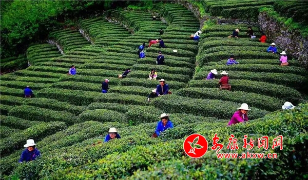 綿延的茶葉梯田坡坡相偎,縷縷茶香沁人心脾,碧綠的茶園如同飄揚(yáng)的絲帶,沿著平坦開(kāi)闊的“宋大公路”鋪開(kāi),在白河縣宋家鎮(zhèn)這抹綠色不僅是色彩,更是村民增收致富的法寶。按照“茶旅一體”的發(fā)展思路,該鎮(zhèn)建成標(biāo)準(zhǔn)化茶園2.5萬(wàn)畝,力將茶區(qū)變景區(qū)。2021年,宋家鎮(zhèn)被農(nóng)業(yè)農(nóng)村部表彰為“一村一品”示范村鎮(zhèn)。