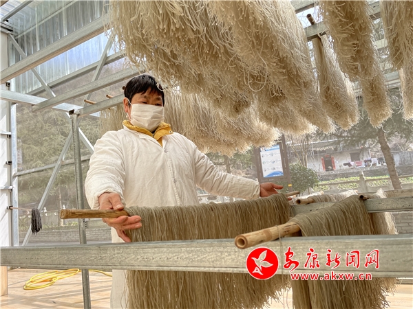 伴著明媚的春光,走進(jìn)焦贊村的招牌企業(yè)--白河縣希望農(nóng)產(chǎn)品加工合作社,一桿桿紅薯粉條正在懸掛、晾曬、消凍。生產(chǎn)車(chē)間內(nèi)熱氣騰騰,六七名工人組成一條生產(chǎn)線,經(jīng)過(guò)打芡、撈粉、晾粉等多道工序,金燦燦的紅薯粉條便成型了。憑借著質(zhì)量過(guò)硬、口碑好,合作社生產(chǎn)的紅薯粉條和洋芋粉在市場(chǎng)上很走俏,并與西安電子科技大學(xué)和縣內(nèi)外學(xué)校企業(yè)達(dá)成了長(zhǎng)期供貨協(xié)議。