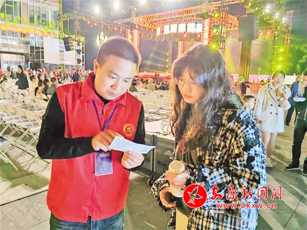 “媽?zhuān)也换貋?lái)吃晚飯了。今晚有志愿服務(wù)活動(dòng)。”春節(jié)前夕,剛結(jié)束工作的周陽(yáng)艦匆忙和家里通了電話(huà),馬不停蹄從單位趕到縣影劇院,投入白河春晚現(xiàn)場(chǎng)維穩(wěn)志愿服務(wù)活動(dòng)中。