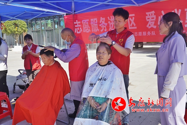 活動現(xiàn)場舉辦的“孝義善舉”主題書畫作品展,內(nèi)容豐富、書體多樣,吸引了許多群眾前來觀看。最受老人歡迎的愛心義剪活動前,身穿紅馬甲的志愿者耐心熱情地詢問著老人的需求,為他們提供免費理發(fā)服務(wù),看見鏡中煥然一新的發(fā)型,老人們臉上洋溢著滿意的笑容。