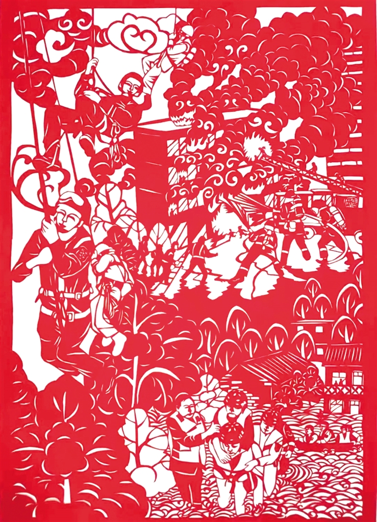 2022年,張莉的剪紙作品在“我與火焰藍(lán)”安康消防授旗訓(xùn)詞三周年風(fēng)采繪畫大賽中,榮獲“成人組優(yōu)秀作品獎(jiǎng)”,并被主辦方收藏。2023年張莉帶隊(duì)參加“德潤(rùn)安康”安康市首屆校園科技藝術(shù)節(jié),在剪紙區(qū),小隊(duì)員們發(fā)揮巧思妙想,精心設(shè)計(jì)、細(xì)心折剪,只見(jiàn)刀尖一開一合,紅紙不斷翻轉(zhuǎn),一幅幅栩栩如生、惟妙惟肖的作品就讓觀眾親眼見(jiàn)證了“刀光剪影”的神奇。隊(duì)員們嫻熟的技藝,精美的作品迅速吸引了許多人駐足參觀。