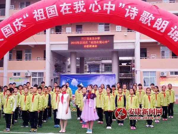 (通訊員 馬靜)為慶祝祖國第66個生日的到來,9月29日下午,東關小學舉行了“祖國在我心中”主題詩歌朗誦會;顒又,11個班級的學生精神飽滿,分別用不同的方式為朗誦了《中華少年》、《我驕傲,我是中國人》、《好孩子愛祖國》、《祖國,我愛您》等詩歌,用稚嫩的聲音歌頌了對祖國母親的崇高敬意和無限熱愛。通過朗誦會讓學生感受到了濃烈的愛國主義情感,進一步弘揚了愛國主義精神。本次活動也是大學區(qū)內的一次“校校聯(lián)誼“活動,來自鼓樓小學四年級的師生受邀參加了活動。