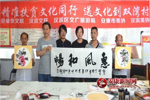 安康新聞網(wǎng)訊(記者 牟慶紅 )由安康市文聯(lián) 漢濱文聯(lián) 安康市美協(xié) 漢濱美協(xié) 漢濱區(qū)文廣旅游局組織的“精準扶貧文化同行 送文化到雙灣村”活動6月25日在漢濱區(qū)中原鎮(zhèn)雙灣村舉行。CD8安康新聞網(wǎng)