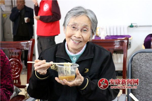 在后廚,志愿者們正緊張地為老人們準(zhǔn)備長壽面。金燦燦的愛心煎蛋、熱鍋里來回翻滾的面條、散著股股清香的醬料,讓人垂涎三尺。“呲溜、呲溜...”吃上這碗熱氣騰騰的長壽面,讓老人們心里熱熱乎乎。