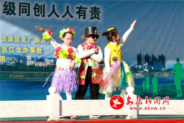 “今天是個好日子,心想的事兒都能成。”嘹亮的歌聲飄揚在校園里,暖人的冬陽照在每張笑臉上。11月21日,安康市文化文物廣電局、漢濱區(qū)文廣旅游局、江北辦晏臺村、江北小學(xué)聯(lián)合舉辦的“創(chuàng)建省級環(huán)保模范城市——‘五城聯(lián)創(chuàng)’進(jìn)校園文藝匯演”在江北小學(xué)華麗上演,為江北辦“五城聯(lián)創(chuàng)•四級同創(chuàng)”工作注入活力,再添動力。