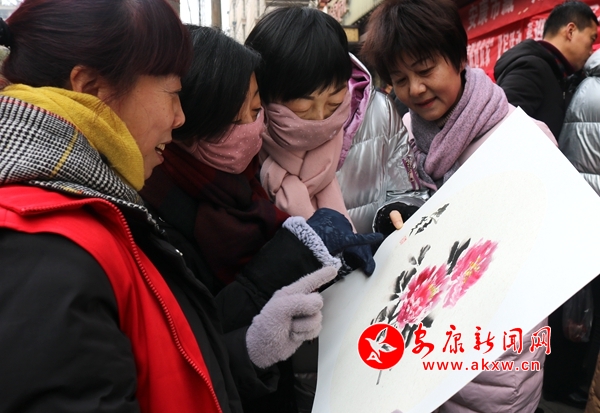 “很高興到鼓樓社區(qū)寫春聯(lián)、送祝福。”張思成點(diǎn)贊鼓樓社區(qū)充滿愛心、重視文化,提供很好的平臺讓書法家和居民一起交流學(xué)習(xí),營造濃濃的春節(jié)民俗氛圍,F(xiàn)場不僅有著名的書法家,著名的畫家也為活動增添色彩,“寒香臘梅”圖、“花開富貴”圖、“事事如意”圖、“節(jié)節(jié)高升”圖等顏色艷麗、生動活潑,美好的寓意是送給居民最溫暖的祝福。