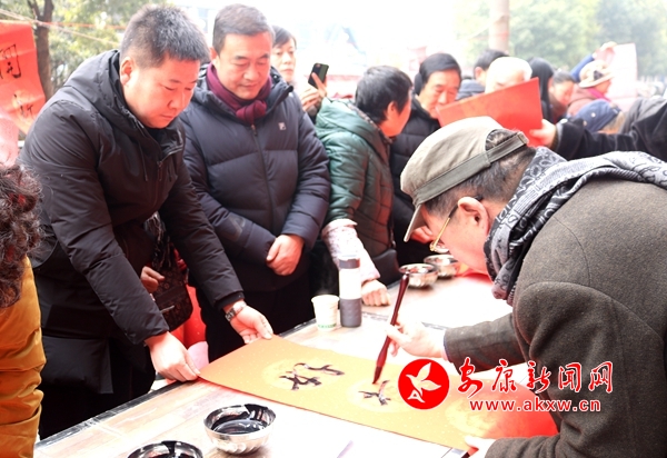 活動現(xiàn)場,八位著名書法家手持毛筆,嫻熟轉(zhuǎn)動手腕, 安康日報(bào)社張思成社長剛把紅紙鋪開就被居民里三層外三層圍了起來,頃刻間,一副洋溢節(jié)日喜慶的“春臨大地百花艷 福至靈芝萬象新”春聯(lián)就寫好了。捧著稱心滿意的春聯(lián),劉先生連聲道謝。