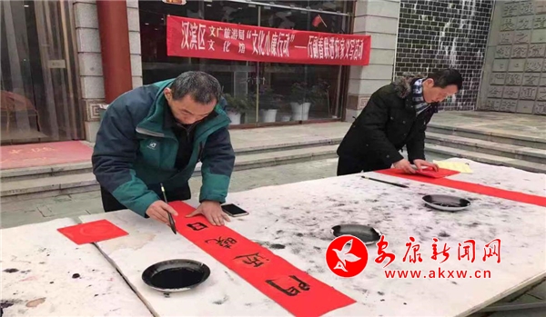 安康新聞網(wǎng)訊(通訊員 王艷 王潔)2019年1月28日,新城街道辦事處邀請著名書法家姚維勛、雷鳴、閆文在香溪文化廣場穆家善美術(shù)館為廣大群眾義寫春聯(lián),他們揮毫潑墨的筆鋒為在場的群眾提供了一場視覺的盛宴。FMu安康新聞網(wǎng)