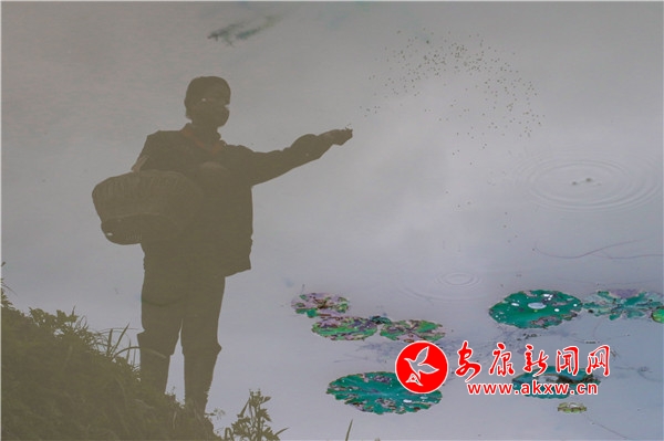 10月12日,漢濱區(qū)縣河鎮(zhèn)財(cái)梁社區(qū)三分良田蝦稻園內(nèi)工人正在喂養(yǎng)小龍蝦。