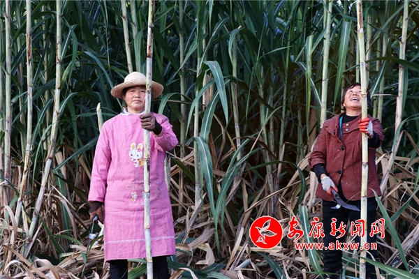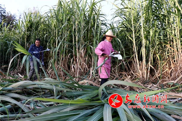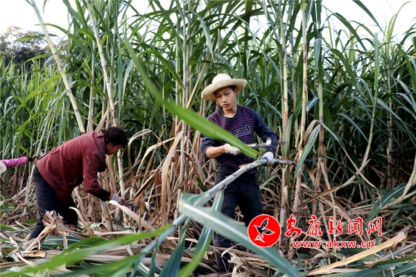 “今年的甘蔗大豐收啊,長得好的很。”正在采收甘蔗的村民陳開云說,“自從村上發(fā)展了甘蔗種植產(chǎn)業(yè),我就在甘蔗基地務(wù)工,種甘蔗,收甘蔗,一天能掙上80元。”