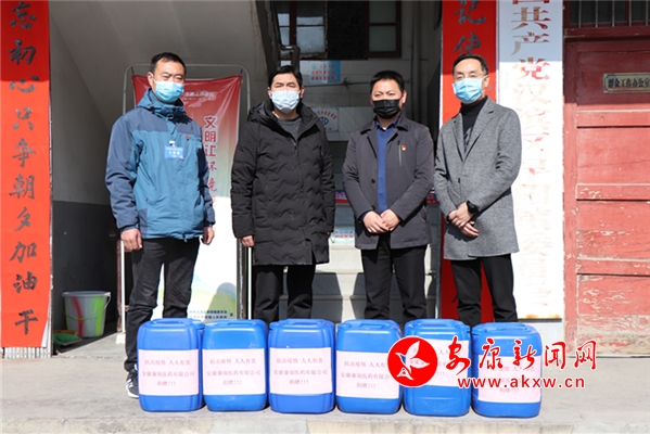 2月4日下午兩點,早陽鎮(zhèn)機(jī)關(guān)院內(nèi)開來了一輛車,下車的人一邊打開后備箱一邊自我介紹道:“我姓陳,老家是咱們吉慶村的,我在外面開醫(yī)藥公司,現(xiàn)在消殺物資很短缺,我也是盡自己所能,給鎮(zhèn)上帶來一些酒精和消毒液。”