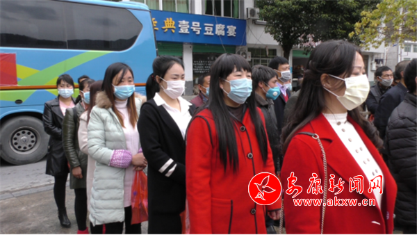 3月9日上午,32名務(wù)工者帶著行李、佩戴口罩,齊聚在茨溝鎮(zhèn)中心廣場,統(tǒng)一乘車前往甘肅臨夏務(wù)工就業(yè),朱紀滿就是其中之一。
