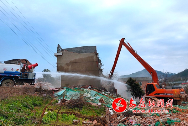 在木竹橋村五組房屋拆除現(xiàn)場,工作人員清場后,周圍拉起警戒線,挖機(jī)揮舞著長臂,灑水車噴灑除塵,工作人員分工配合,拆除現(xiàn)場井然有序,如火如荼。征收辦干部放棄休息時間,反復(fù)多次上門與拆遷戶商談,宣傳政策,簽訂協(xié)議,測量、核實(shí)面積,全力把受疫情影響的時間搶回來。