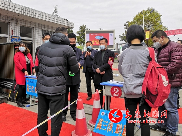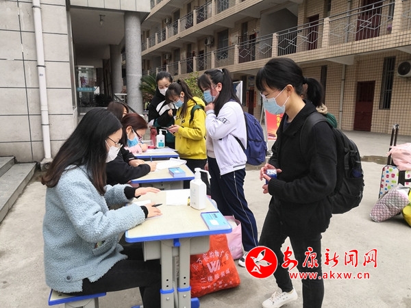 本網(wǎng)訊(通訊員 趙軍 張濤)今天是3月30日,也是陜西省教育廳規(guī)定高三開學(xué)復(fù)課的日子,老師和同學(xué)們?cè)俅蜗嗑,全力以赴?fù)課備考,從早七點(diǎn)多開始,安康城區(qū)漢濱高中的高三學(xué)生們陸續(xù)入校,大家不約而同全程佩戴口罩,在老師指引下,有序通過紅外測(cè)溫儀,并用酒精對(duì)全身和行李進(jìn)行消毒。JfB安康新聞網(wǎng)