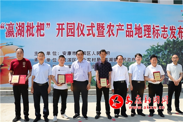 活動現(xiàn)場,陜西省農(nóng)產(chǎn)品質(zhì)量安全中心主任程曉東向漢濱區(qū)蠶茶果技術(shù)中心頒發(fā)了“瀛湖枇杷”農(nóng)產(chǎn)品地理標(biāo)志證書。省市區(qū)領(lǐng)導(dǎo)向漢濱區(qū)農(nóng)興果業(yè)農(nóng)民專業(yè)合作社、漢濱區(qū)碧玉泉果業(yè)種植農(nóng)民專業(yè)合作社、安康天道酬勤農(nóng)業(yè)綜合開發(fā)有限公司、安康市康軒生態(tài)科技有限責(zé)任公司等首批“瀛湖枇杷”農(nóng)產(chǎn)品地理標(biāo)志使用者頒發(fā)了準(zhǔn)用證書并授牌。