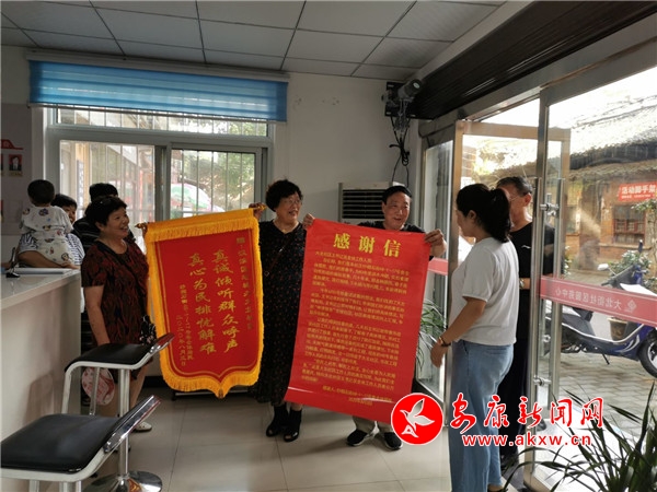 本網(wǎng)訊(通訊員 馬一平)8月2日,紗帽石街48號(hào)巷道居民代表來(lái)到大北街社區(qū),將一面題為“真誠(chéng)傾聽群眾呼聲,真心為民排憂解難”的錦旗和感謝信送至王宗梅書記手中,感謝老城街道創(chuàng)建辦及大北街社區(qū)在紗帽石街48號(hào)道路改造中做出的努力。