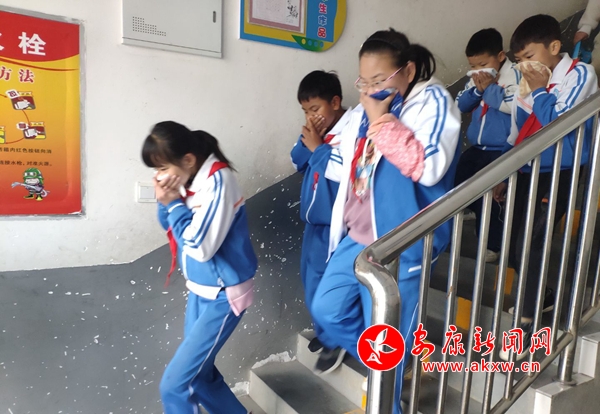 演練中,全校500多名學(xué)生在各班老師的指引下,捂住口鼻,彎著身體、快速有序地按照既定的逃生路線,撤離到學(xué)校操場(chǎng),從警報(bào)聲響起到最后一名學(xué)生撤離到操場(chǎng),僅用時(shí)1分30秒。